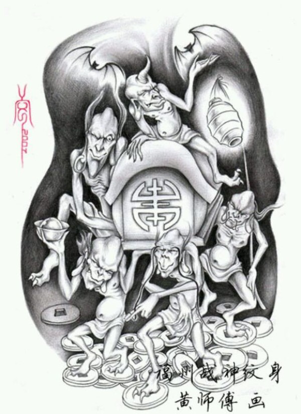 五鬼抬棺手稿_一组五鬼运棺的作品+手稿图案作品