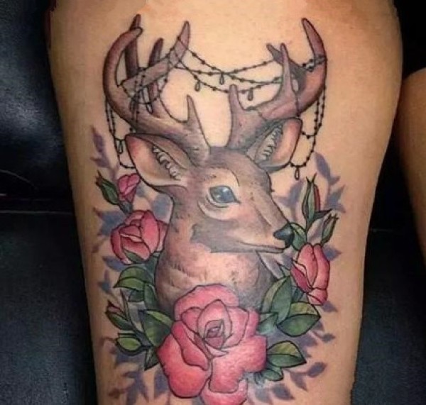 麋鹿纹身作品_14张动物麋鹿纹身图案图片作品欣赏