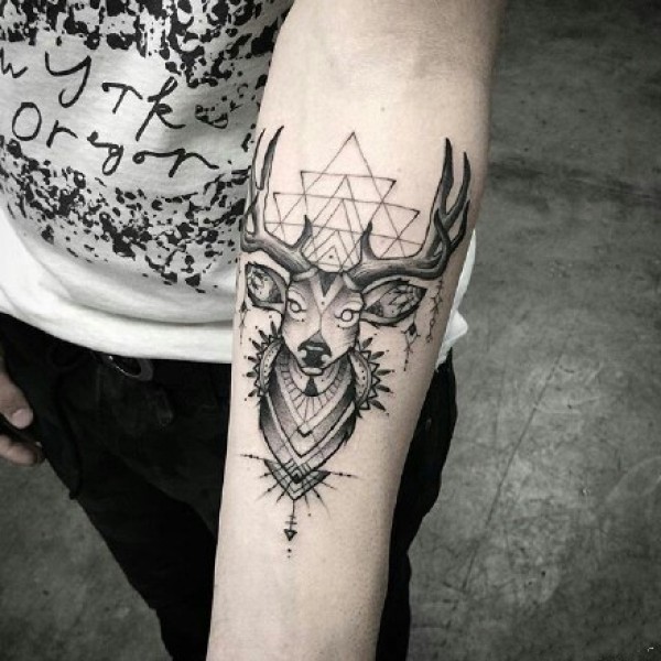 麋鹿纹身作品_14张动物麋鹿纹身图案图片作品欣赏