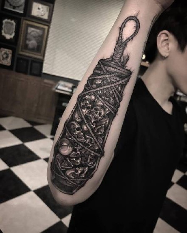男性手臂newschool纹身_18张男性手臂上黑灰newschool纹身图案图片