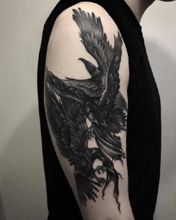 欧美花臂纹身_22张霸气黑灰欧美大黑花臂纹身图案作品图片