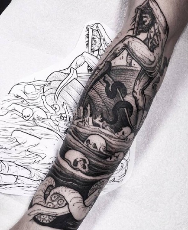欧美花臂纹身_22张霸气黑灰欧美大黑花臂纹身图案作品图片