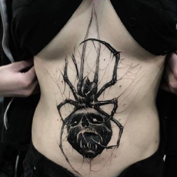 蜘蛛网纹身图案 黑灰色调个性十足的蜘蛛或蜘蛛网纹身图案