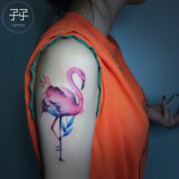 火烈鸟纹身图_14张粉红色的火烈鸟纹身图案作品图片