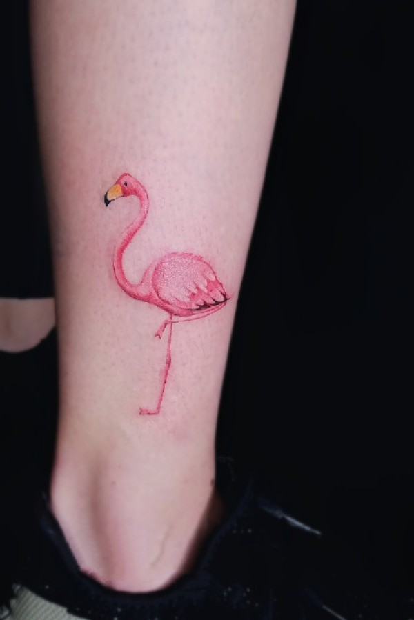 百乐动物纹身 女生小腿上彩色的火烈鸟纹身图片