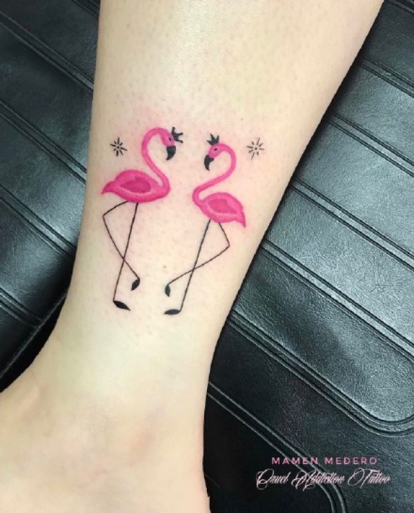 女生小腿小清新火烈鸟纹身图案