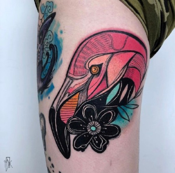 火烈鸟纹身图_14张粉红色的火烈鸟纹身图案作品图片