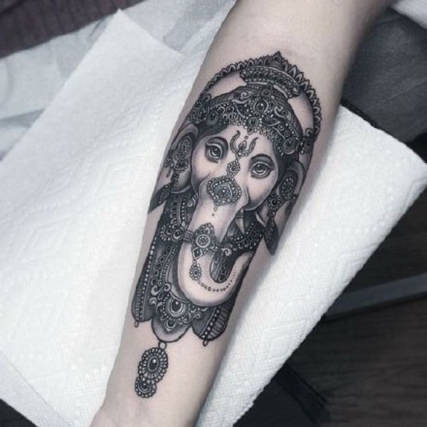 手臂黑灰象神_一组12张手臂上的黑灰象神纹身图案作品欣赏