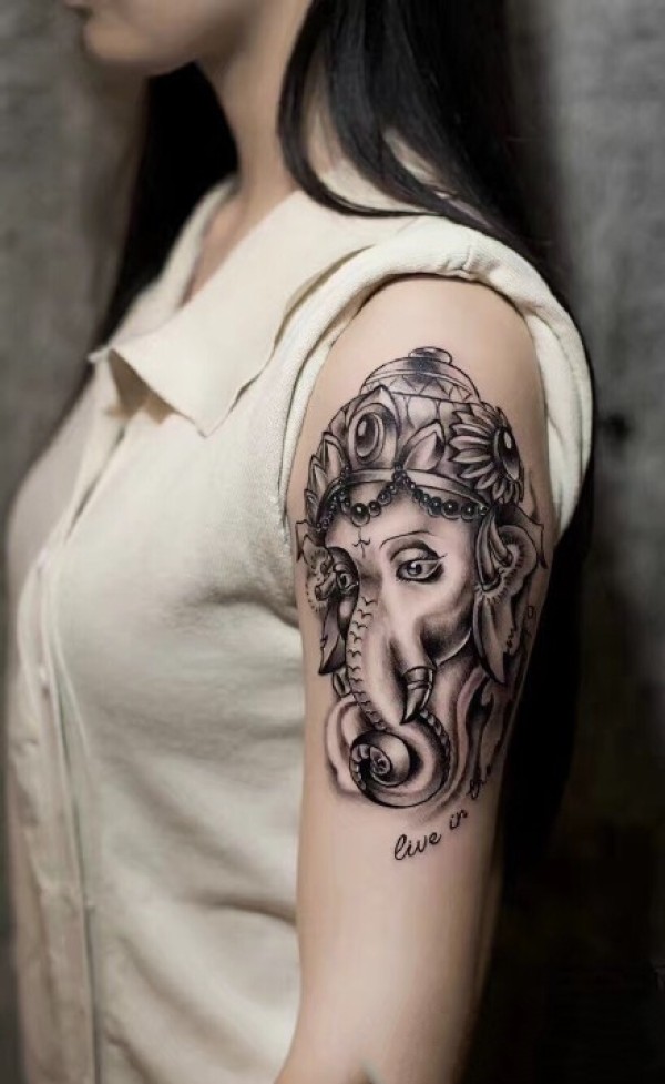 手臂黑灰象神_一组12张手臂上的黑灰象神纹身图案作品欣赏