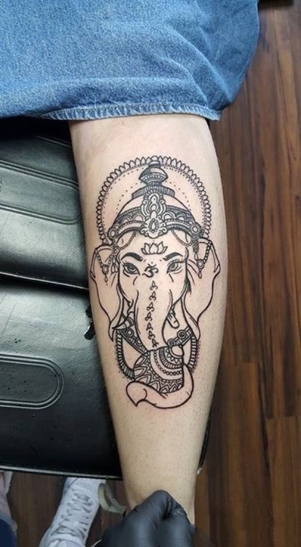 手臂黑灰象神_一组12张手臂上的黑灰象神纹身图案作品欣赏