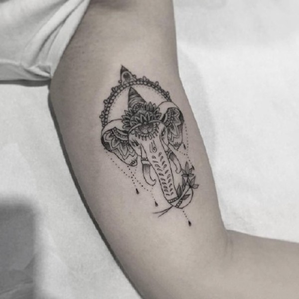 手臂黑灰象神_一组12张手臂上的黑灰象神纹身图案作品欣赏