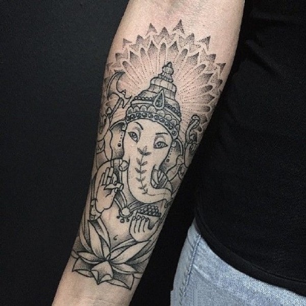 手臂黑灰象神_一组12张手臂上的黑灰象神纹身图案作品欣赏