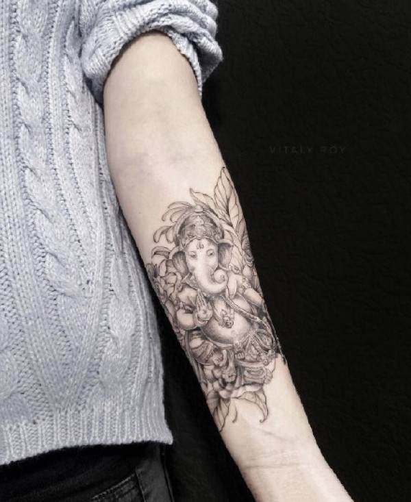 手臂黑灰象神_一组12张手臂上的黑灰象神纹身图案作品欣赏