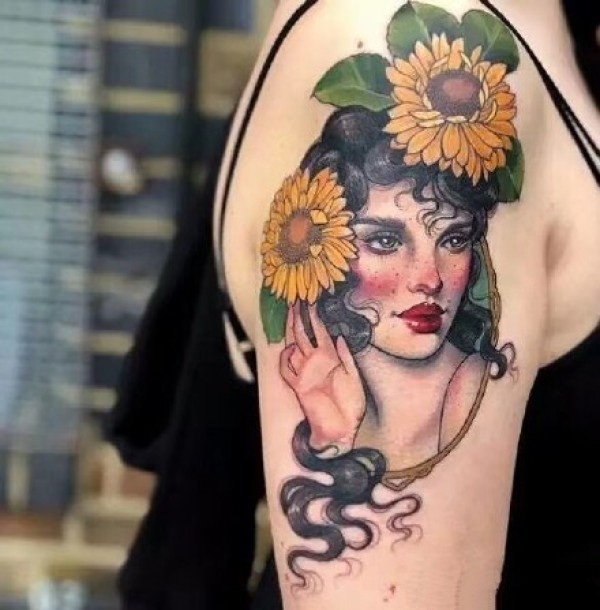 school花臂纹身--一组漂亮的school风格的花臂纹身图案作品