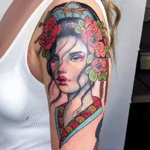 school花臂纹身--一组漂亮的school风格的花臂纹身图案作品