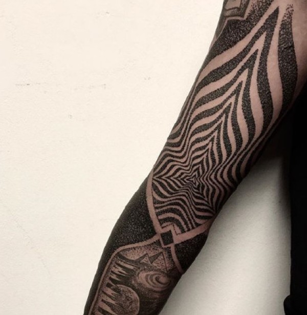 点刺大黑花臂纹身_9张点刺风格的大黑臂纹身图案作品图片