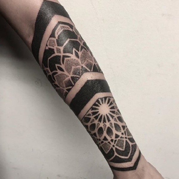 点刺大黑花臂纹身_9张点刺风格的大黑臂纹身图案作品图片