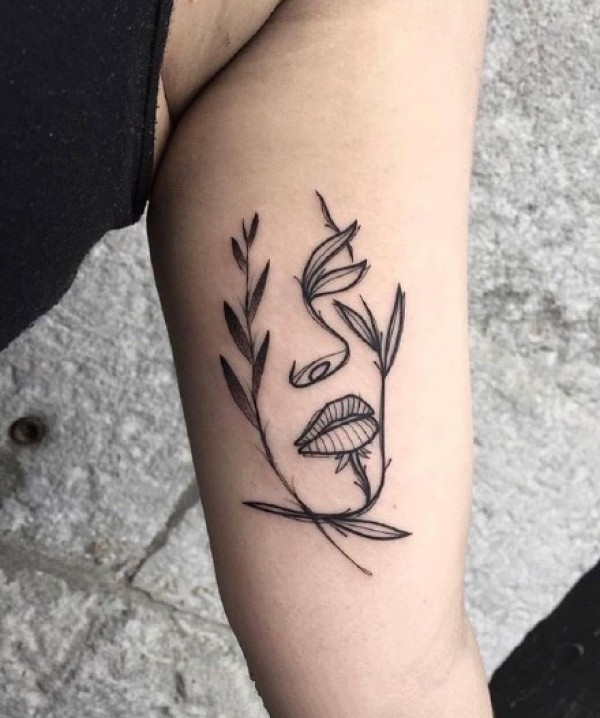 植物人面创意纹身_9张创意植物+人面简约线条纹身图案图片