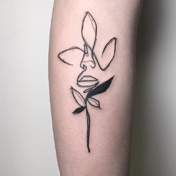 植物人面创意纹身_9张创意植物+人面简约线条纹身图案图片