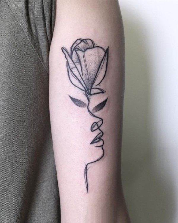植物人面创意纹身_9张创意植物+人面简约线条纹身图案图片