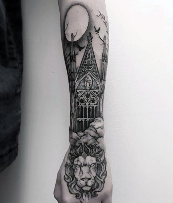 教堂纹身图案 极具欧美建筑色彩的教堂纹身图案