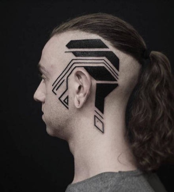 很有科幻主义未来感觉的一组黑色图腾纹身作品
