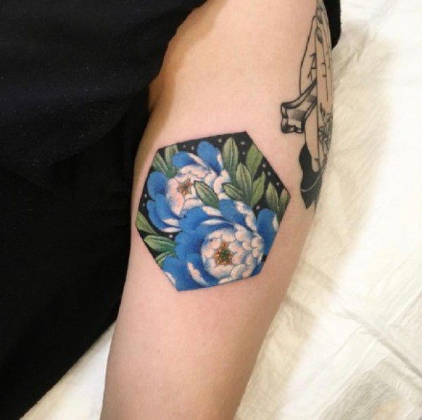 剪影纹身-女生手臂上色彩多姿的剪影纹身图片
