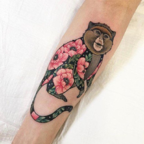 剪影纹身-女生手臂上色彩多姿的剪影纹身图片