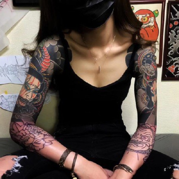 霸气半甲纹身-日式女性性感霸气的半甲纹身图片