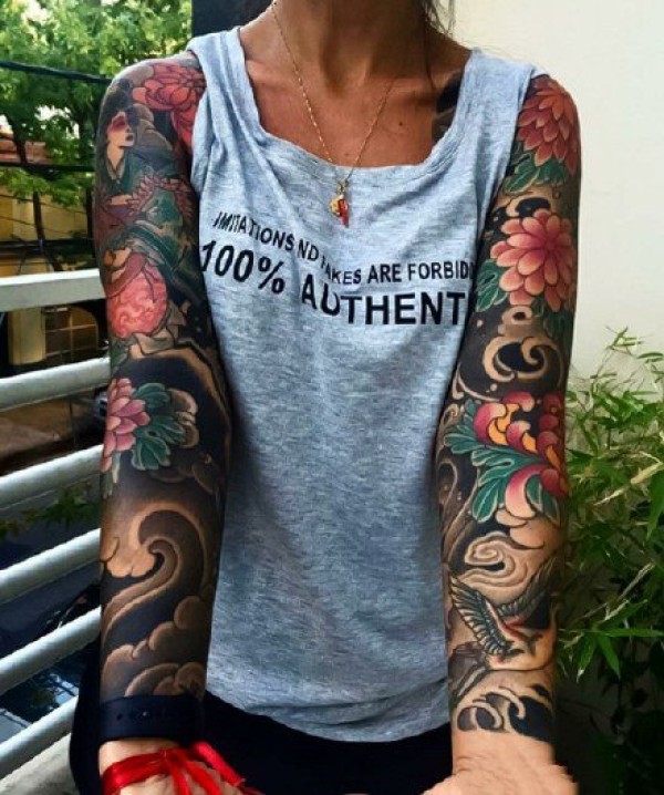 霸气半甲纹身-日式女性性感霸气的半甲纹身图片