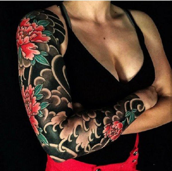 霸气半甲纹身-日式女性性感霸气的半甲纹身图片