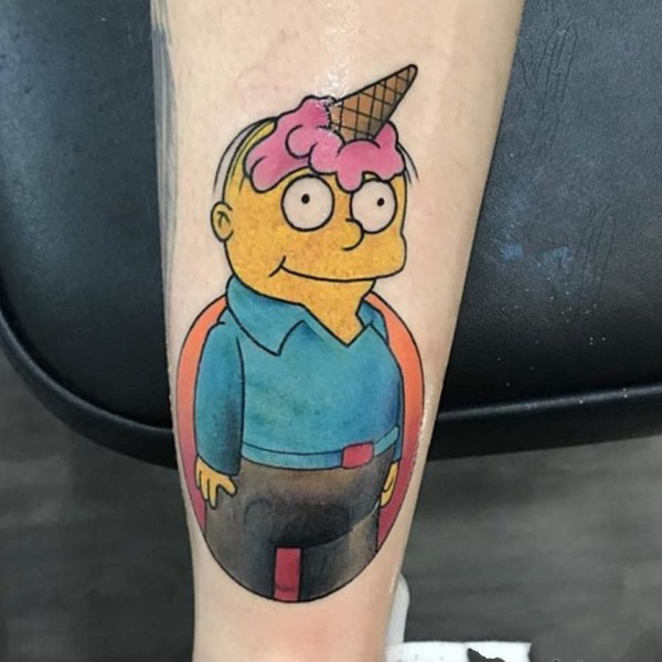 水彩纹身-彩绘水彩素描的创意有趣精致的辛普森卡通纹身图案
