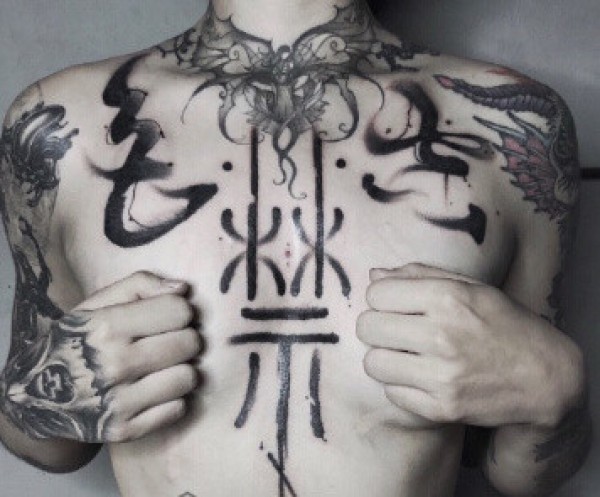 水墨书法风格的纹身-每个字背后都蕴含着深刻的含义