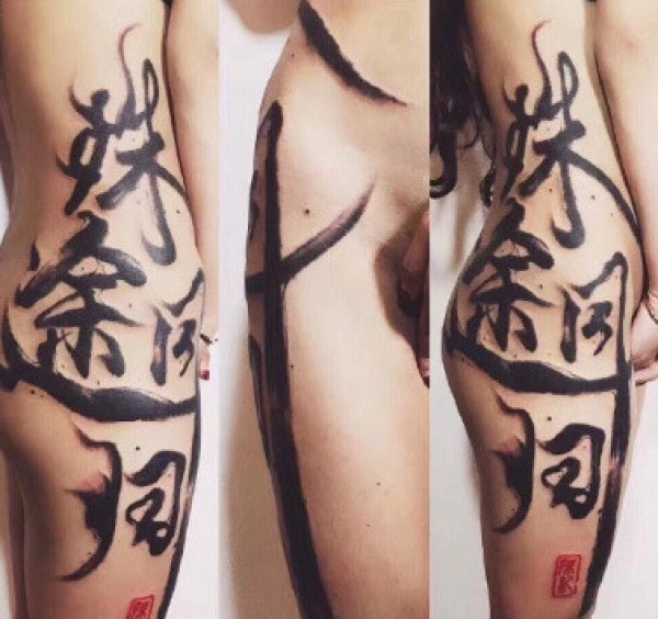 水墨书法风格的纹身-每个字背后都蕴含着深刻的含义