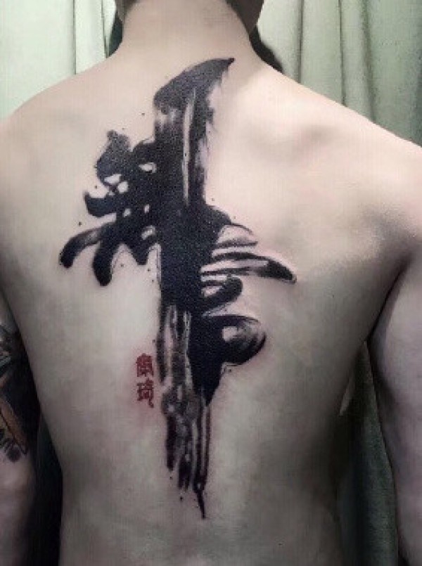 水墨书法风格的纹身-每个字背后都蕴含着深刻的含义