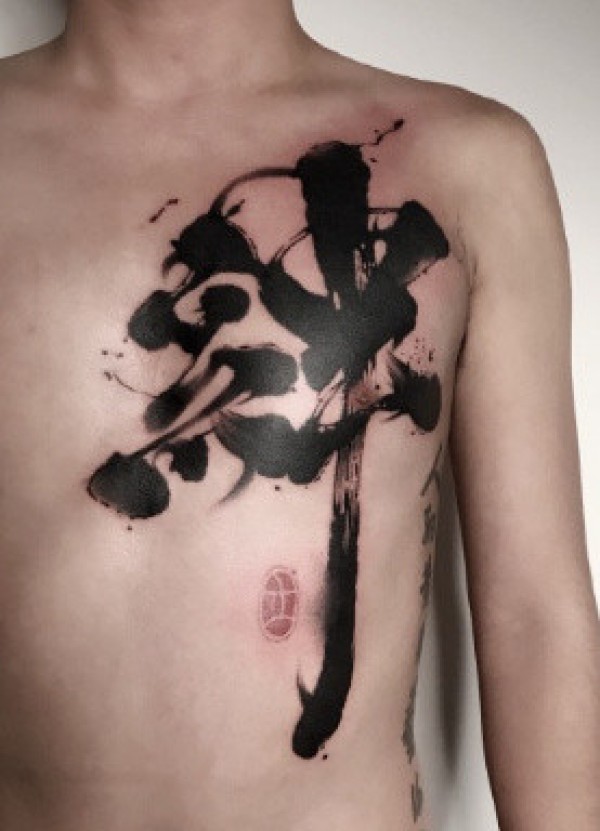 水墨书法风格的纹身-每个字背后都蕴含着深刻的含义