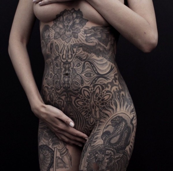性感纹身-漂亮美女性感全身黑白大胆的纹身图片