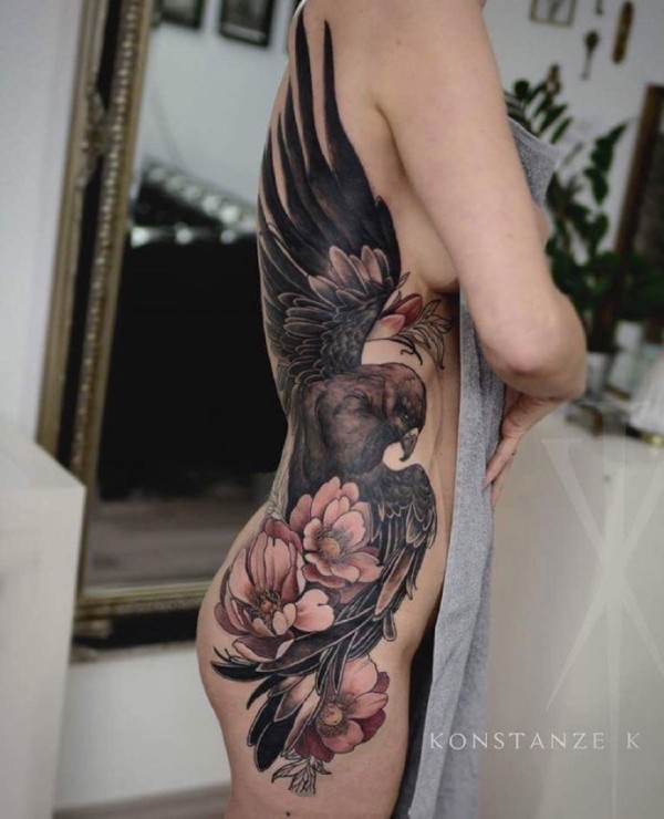 性感纹身-花朵缠绕腰间的性感美女纹身图案