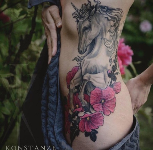 性感纹身-花朵缠绕腰间的性感美女纹身图案