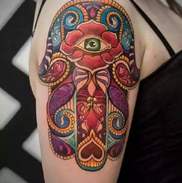 符号纹身-法蒂玛幸运之手保佑平安祈求健康的纹身图片