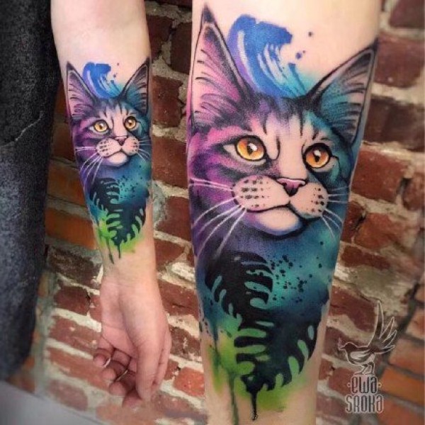 潮流纹身-色彩可爱的小猫小狗手臂纹身图片