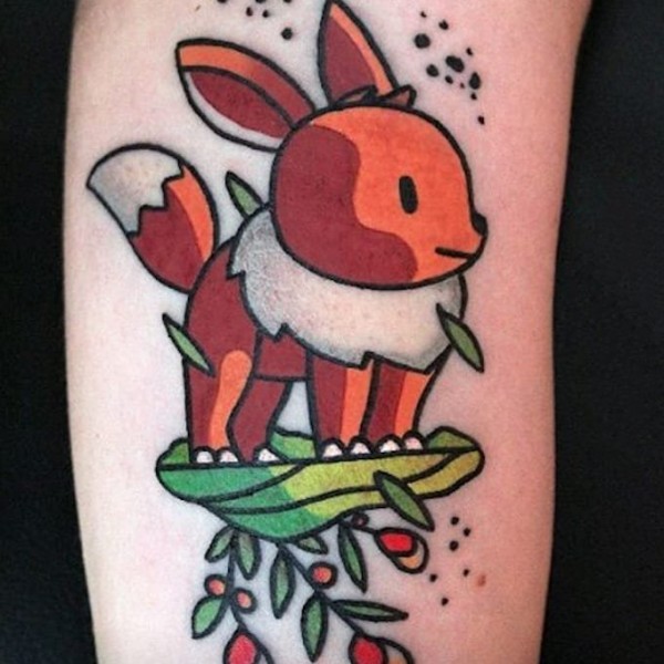彩绘纹身图案-彩绘宝可梦伊布呆萌可爱纹身图案
