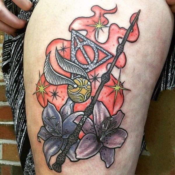 欧美纹身图片-欧美被哈利波特的魔杖施加魔法的纹身图案