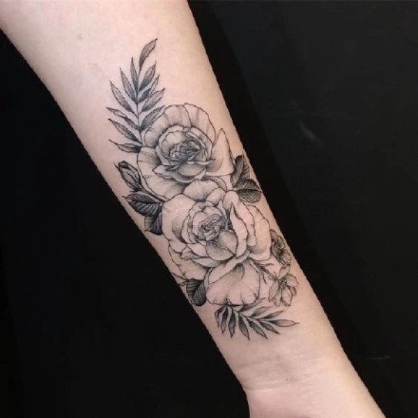女性手臂上漂亮的玫瑰花纹身图案
