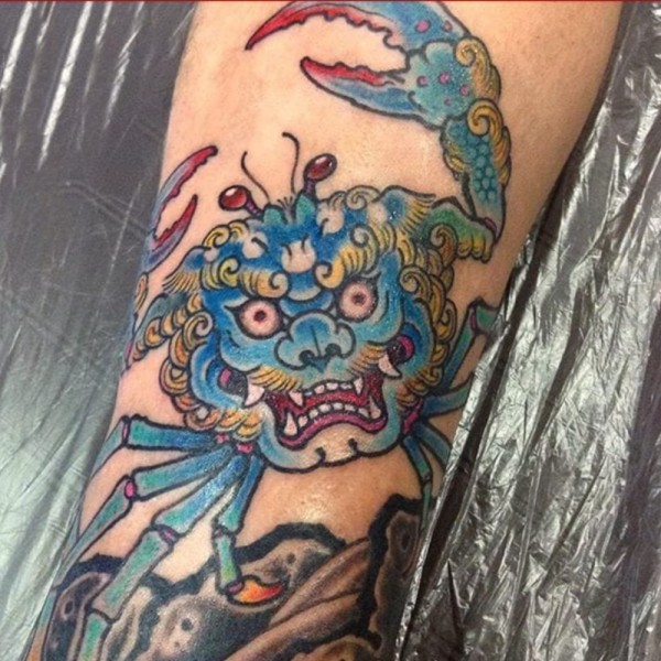 腿部红螃蟹纹身图案
