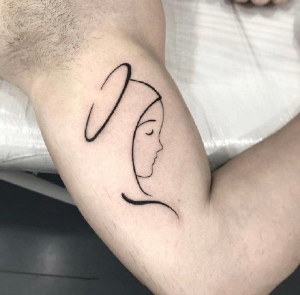 小清新纹身图案-看上去很孤单的线条纹身图片