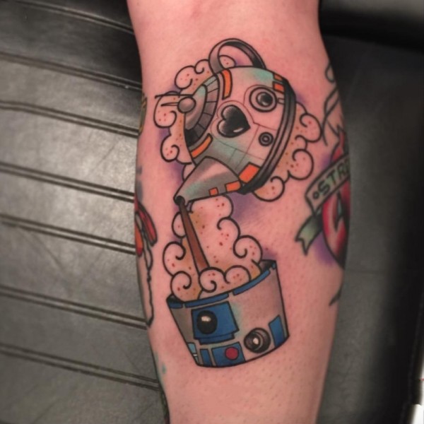 彩绘纹身图案-彩绘水彩素描描绘的创意有趣机器人纹身图案