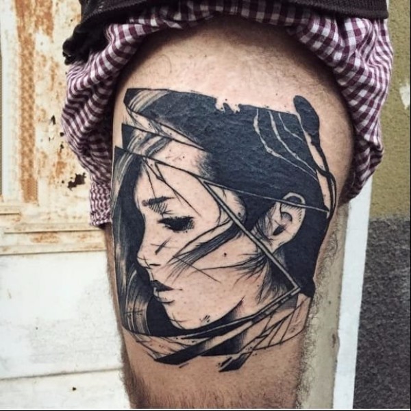 创意纹身图案-黑灰素描点刺技巧描绘的创意设计感十足的纹身图案