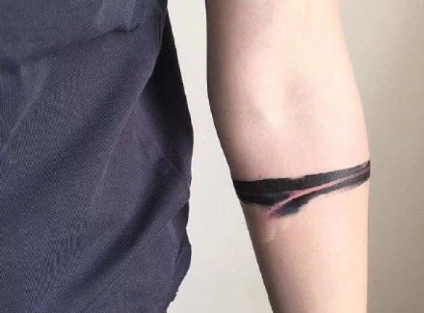 手臂纹身图案-黑丝线条缠绕在手上的手环纹身图片