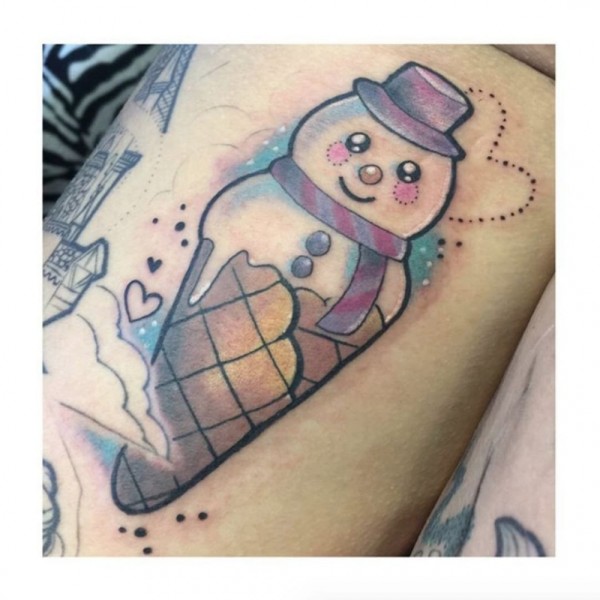 彩绘纹身图案-彩绘水彩素描的创意有趣精致雪人纹身图案